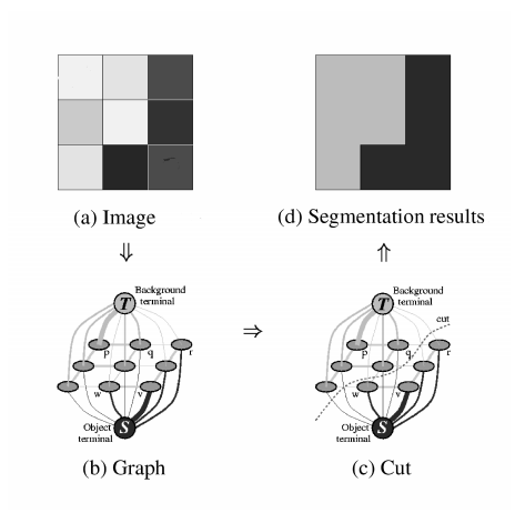 Now, the maximum-flow(minimum-cut) of this graph will be the segmentation of the original graph. This segmentation should be a partition such that similar pixels close to each other will belong to the same partition.