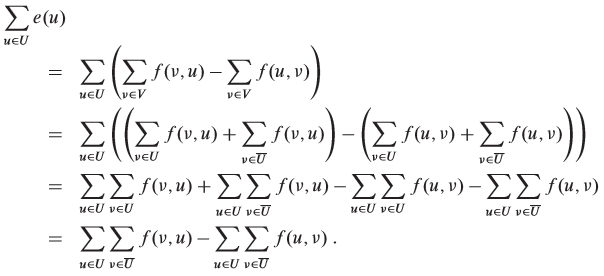 We know that the quantity Σe(u) must be positive because e(x) > 0, x ∈ U, all vertices other than S have nonnegative excess and S ∉ U. Thus, we have